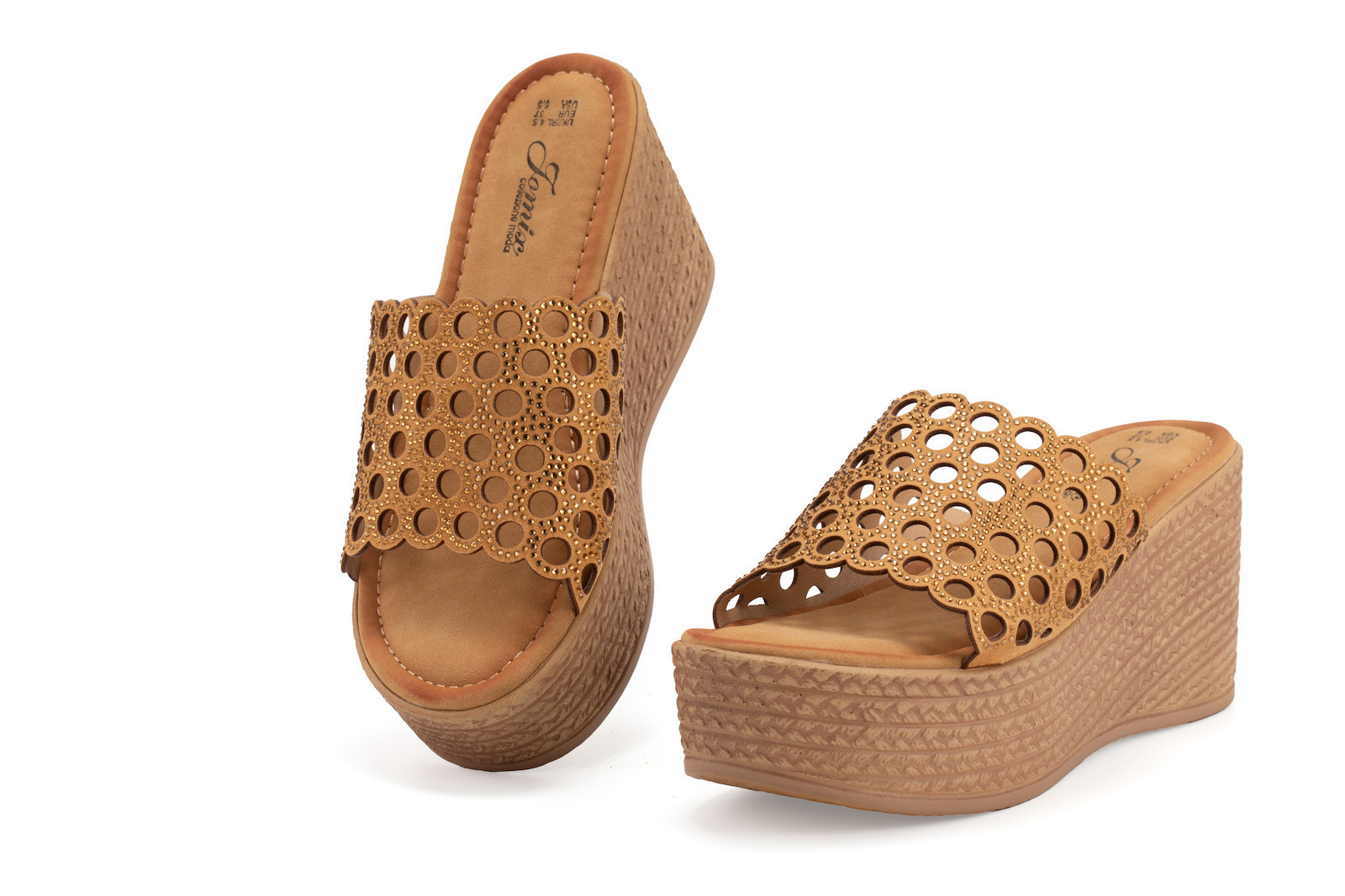Γυναικείες Καλοκαιρινές Παντόφλες Εξόδου Κάμελ