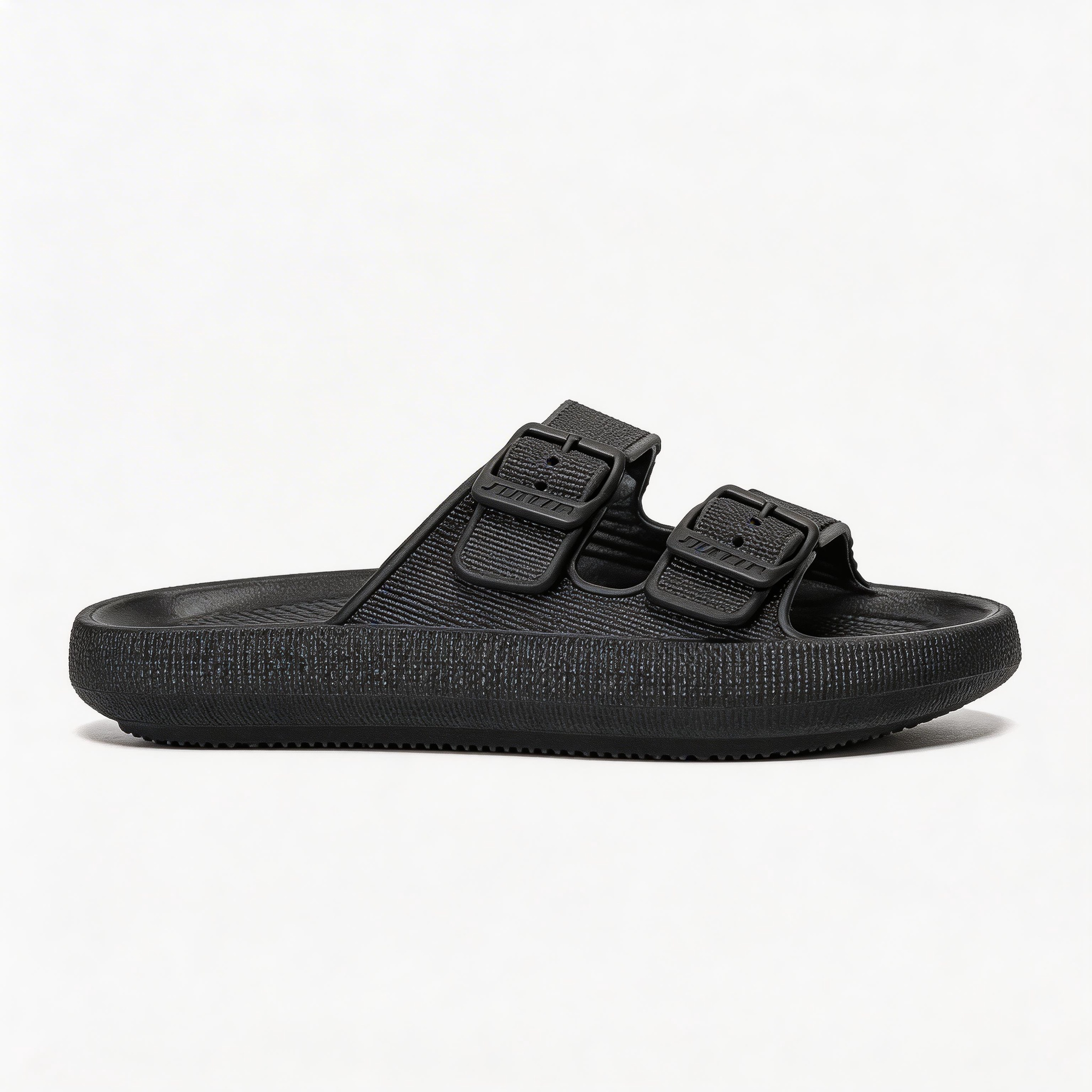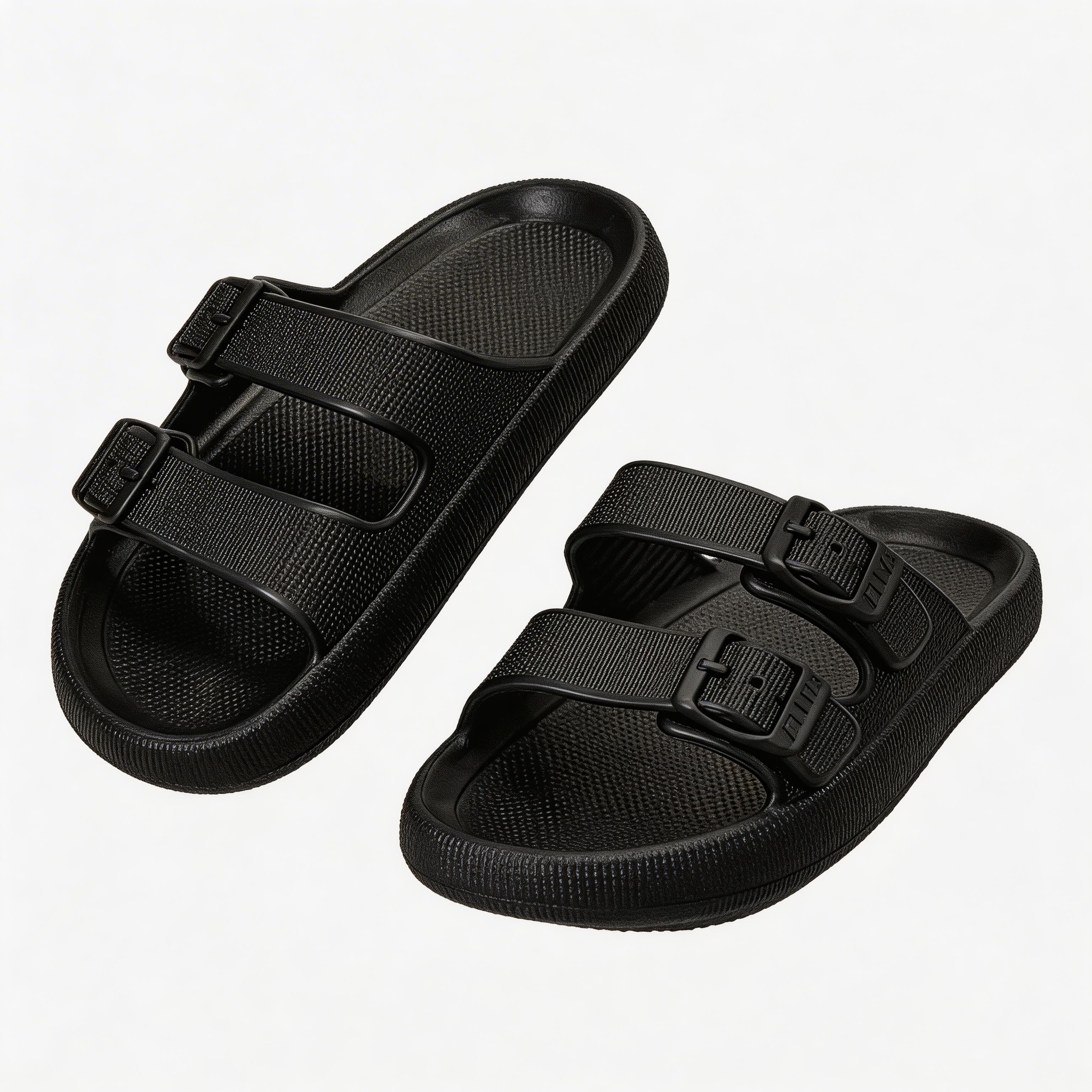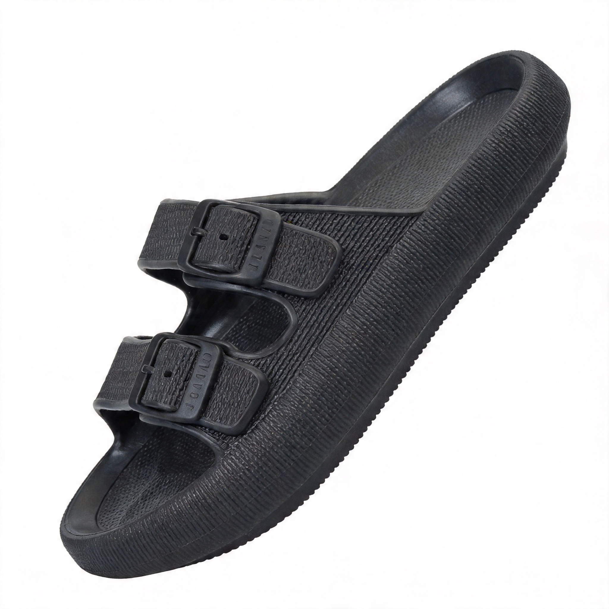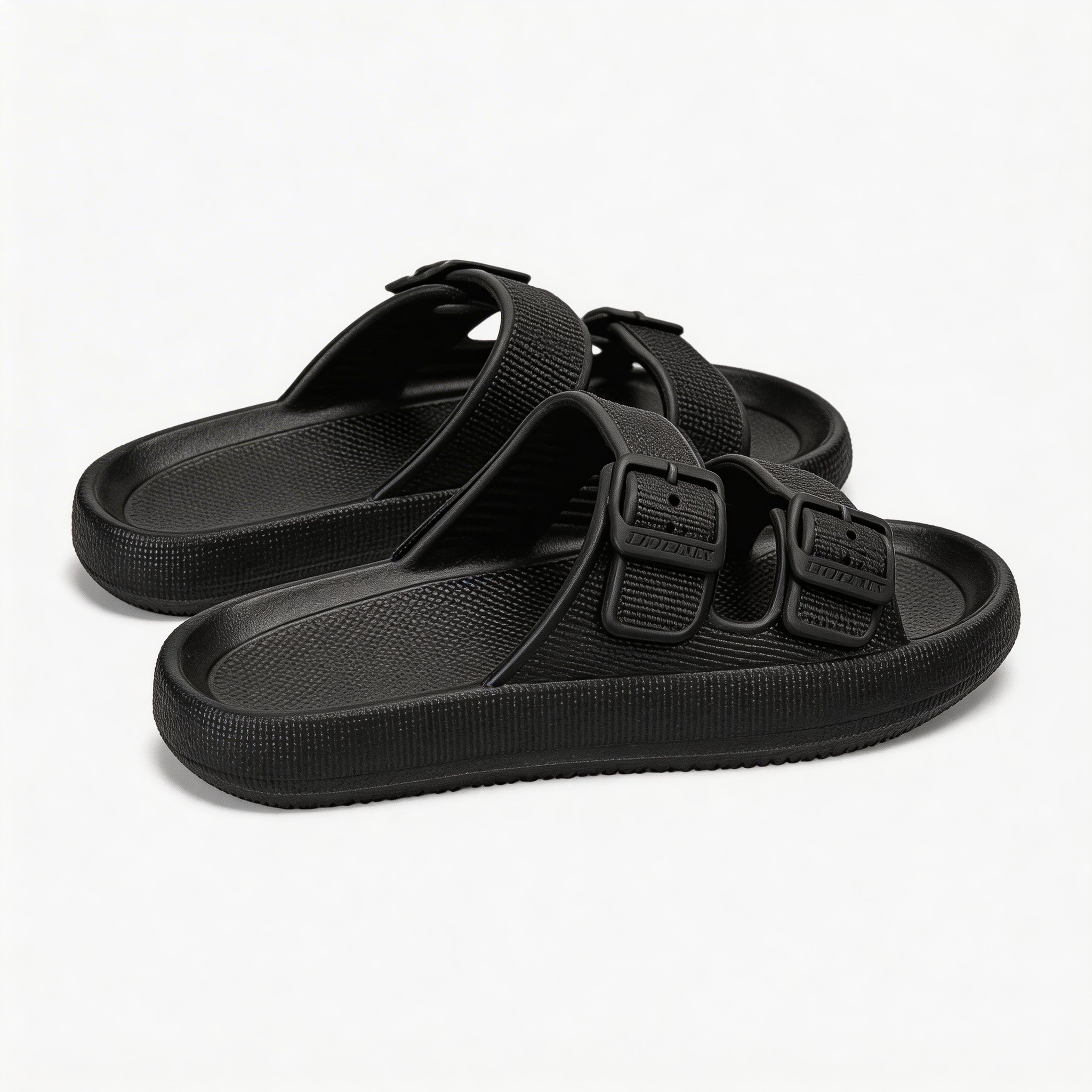 Αυτές οι γυναικείες πλαστικές παντόφλες Jomix σε μαύρο χρώμα συνδυάζουν την κομψότητα με την απόλυτη άνεση. Με την εύκολη ρύθμιση και την αδιάκοπη στήριξη, θα γίνουν το αγαπημένο σας παπούτσι για το σπίτι, την παραλία και τις καθημερινές σας βόλτες.