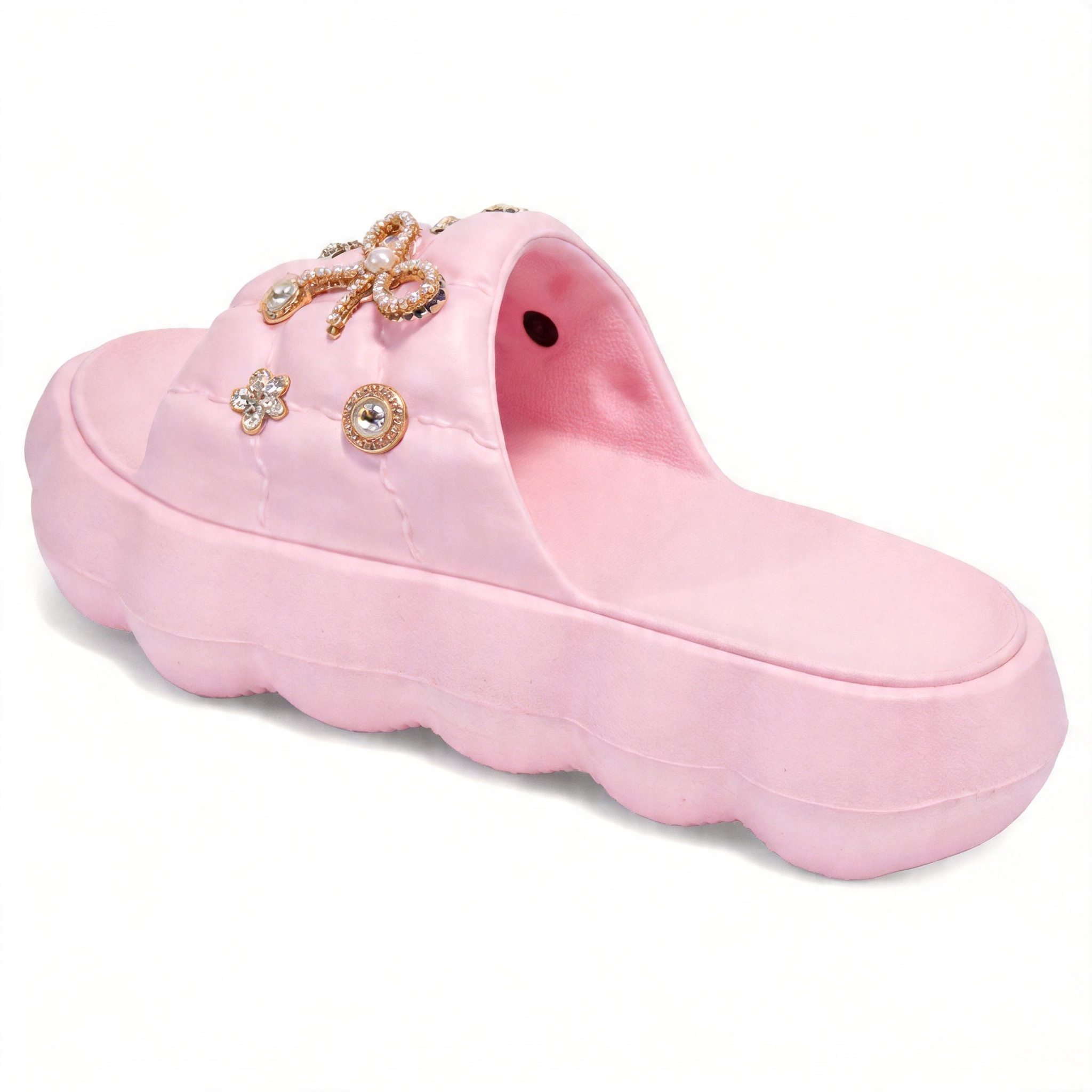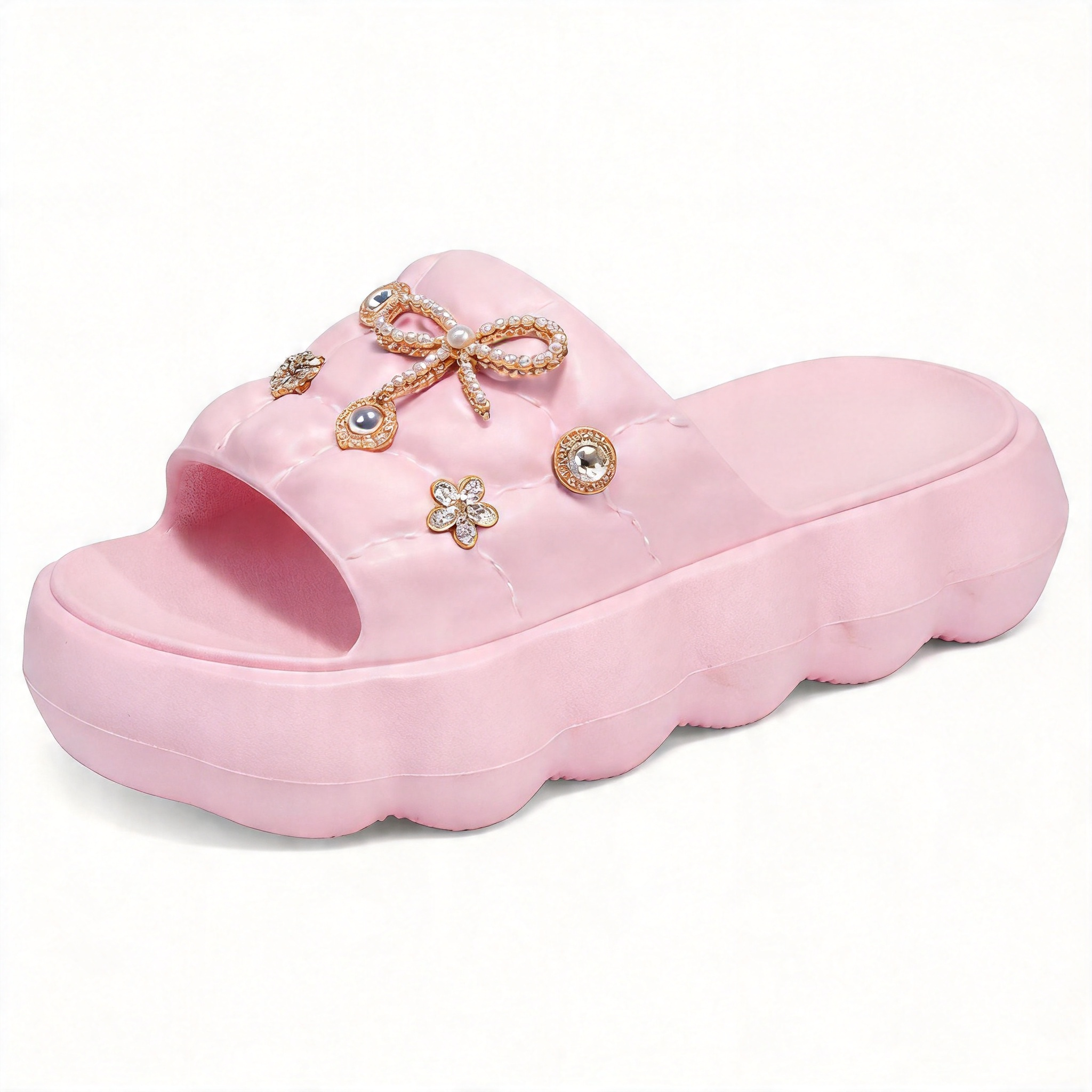 - Διακοσμητικά στοιχεία με μαργαριτάρια, λουλούδια και κορδέλες προσδίδουν μια πολυτελή, γυναικεία ατμόσφαιρα.