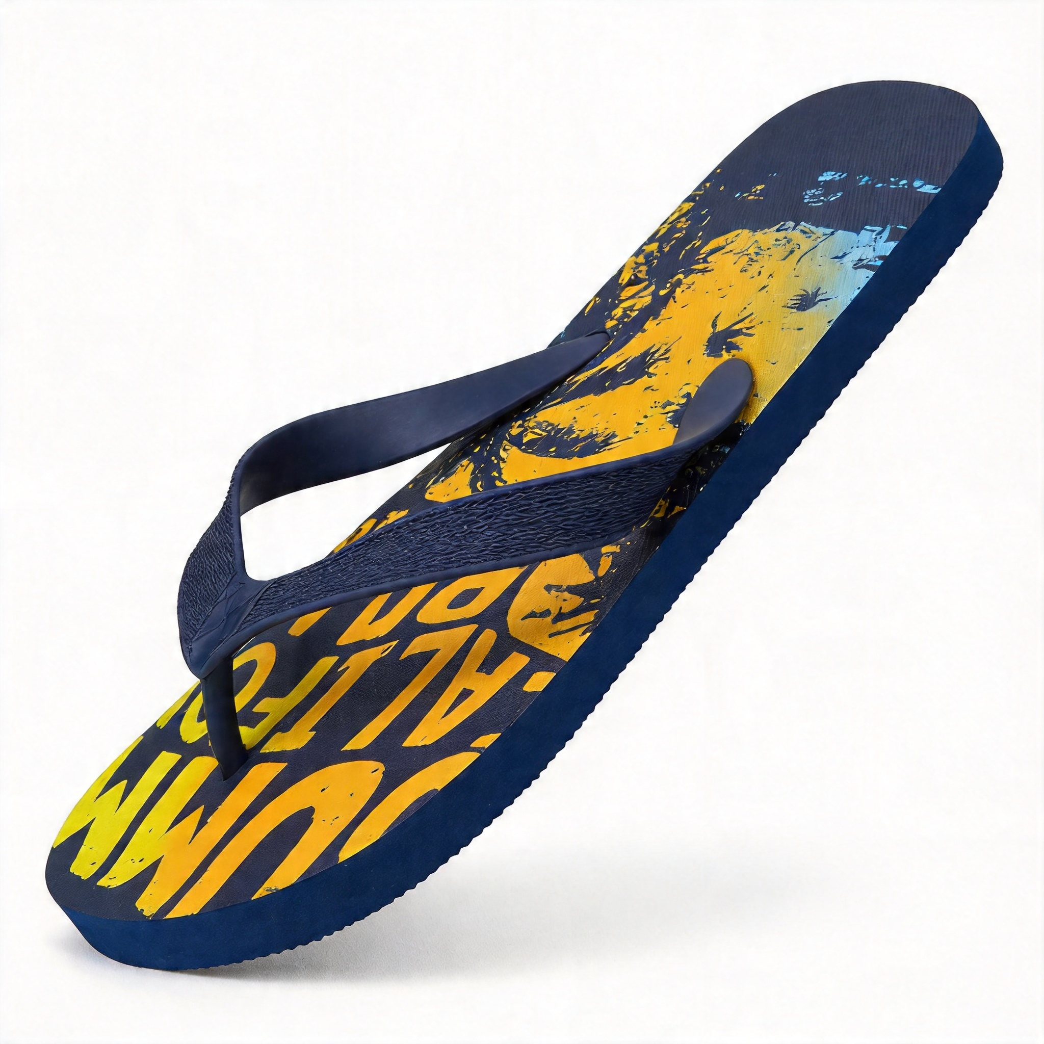 Οι ανδρικές σαγιονάρες JOMIX με το δυναμικό ναυτικό μπλε χρώμα και ζωντανό κίτρινο σχέδιο είναι η ιδανική επιλογή για casual, μοντέρνο καλοκαιρινό στυλ. Κατασκευασμένες από ανθεκτικό, ελαφρύ υλικό, προσφέρουν άνεση και urban ατμόσφαιρα.