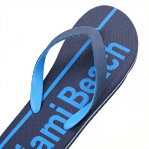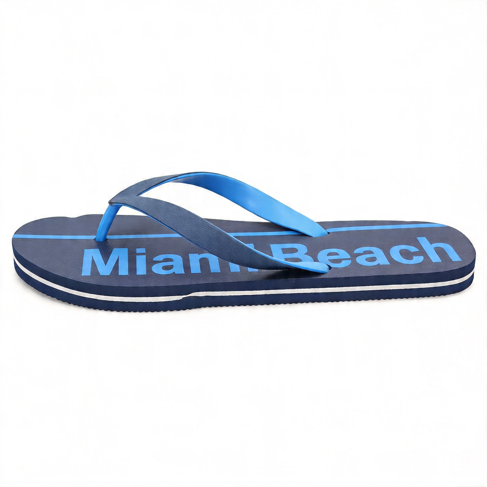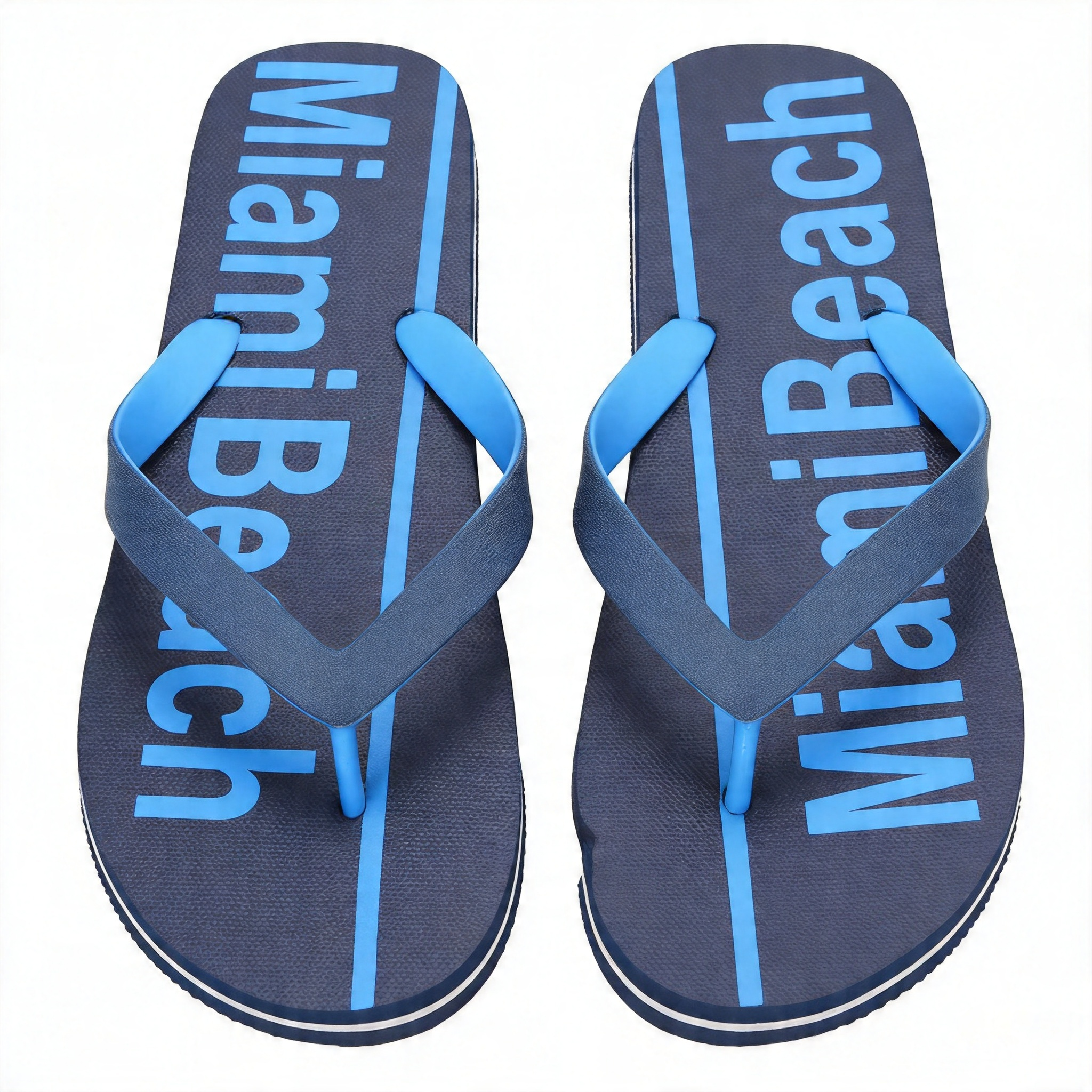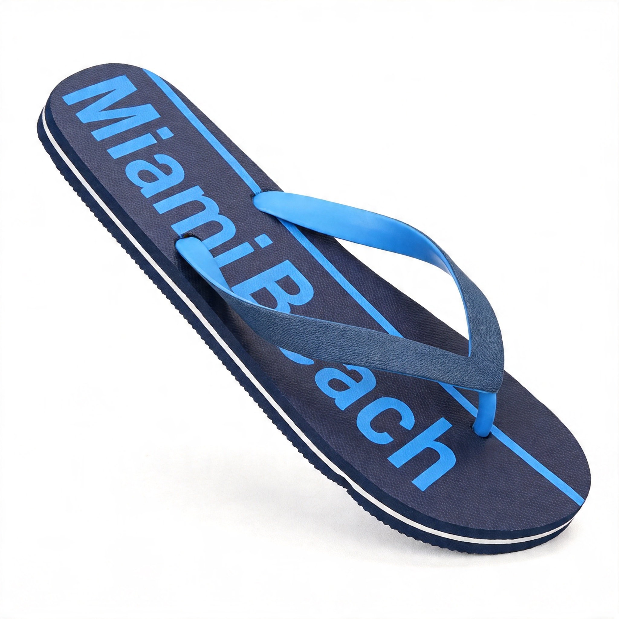 Η σόλα με το έντονο μπλε γραφικό “Miami Beach” προσδίδει μια καθαρή, παραλιακή ατμόσφαιρα, ιδανική για όσους αγαπούν το ναυτικό στυλ.