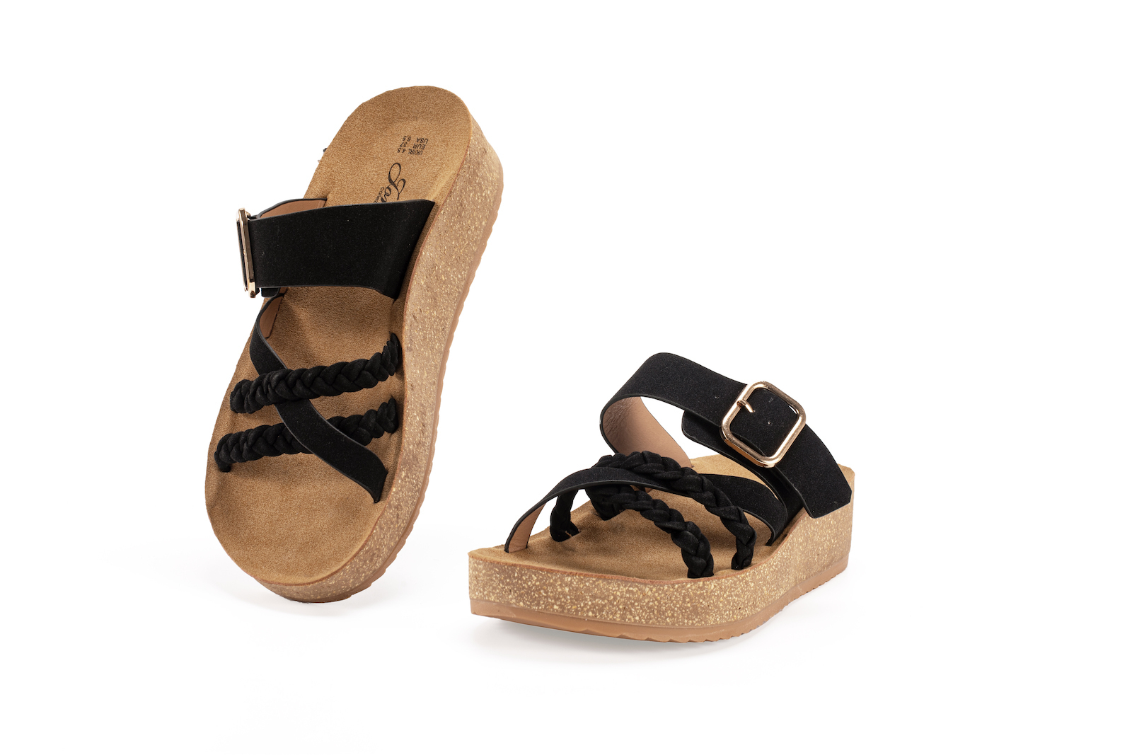 Με εξωτερική σύνθεση από συνθετικό καστόρι υλικό και πάτο από φελλό, ύψους 5 cm.Έχουν αντιολισθητική σόλα και ενιαίο, ανατομικό εσωτερικό πάτο, για ορθή στάση σώματος.Είναι άνετες και κομψές, κατάλληλες για καθημερινή χρήση.