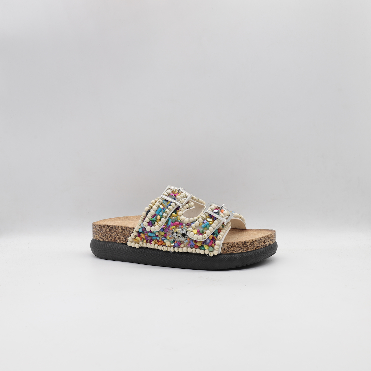 Με εξωτερική σύνθεση από συνθετικό καστόρι υλικό και πάτο από φελλό, ύψους 5 cm.Έχουν αντιολισθητική σόλα και ενιαίο, ανατομικό εσωτερικό πάτο, για ορθή στάση σώματος.Είναι άνετες και κομψές, κατάλληλες για καθημερινή χρήση.