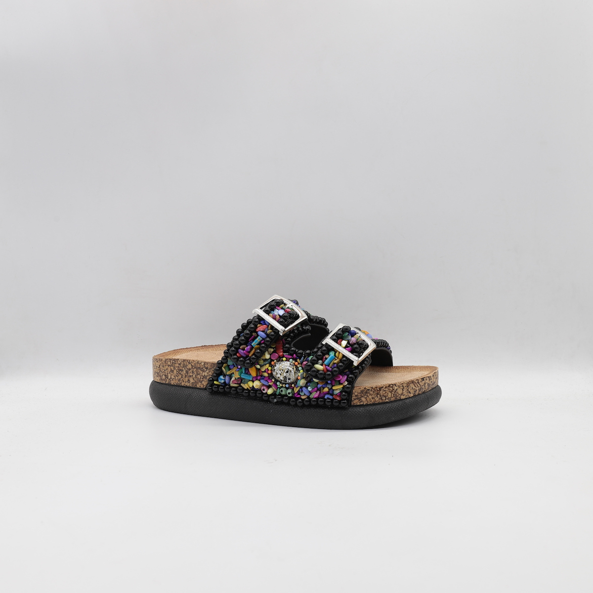 Με εξωτερική σύνθεση από συνθετικό καστόρι υλικό και πάτο από φελλό, ύψους 5 cm. Έχουν αντιολισθητική σόλα και ενιαίο, ανατομικό εσωτερικό πάτο, για ορθή στάση σώματος.Είναι άνετες και κομψές, κατάλληλες για καθημερινή χρήση.