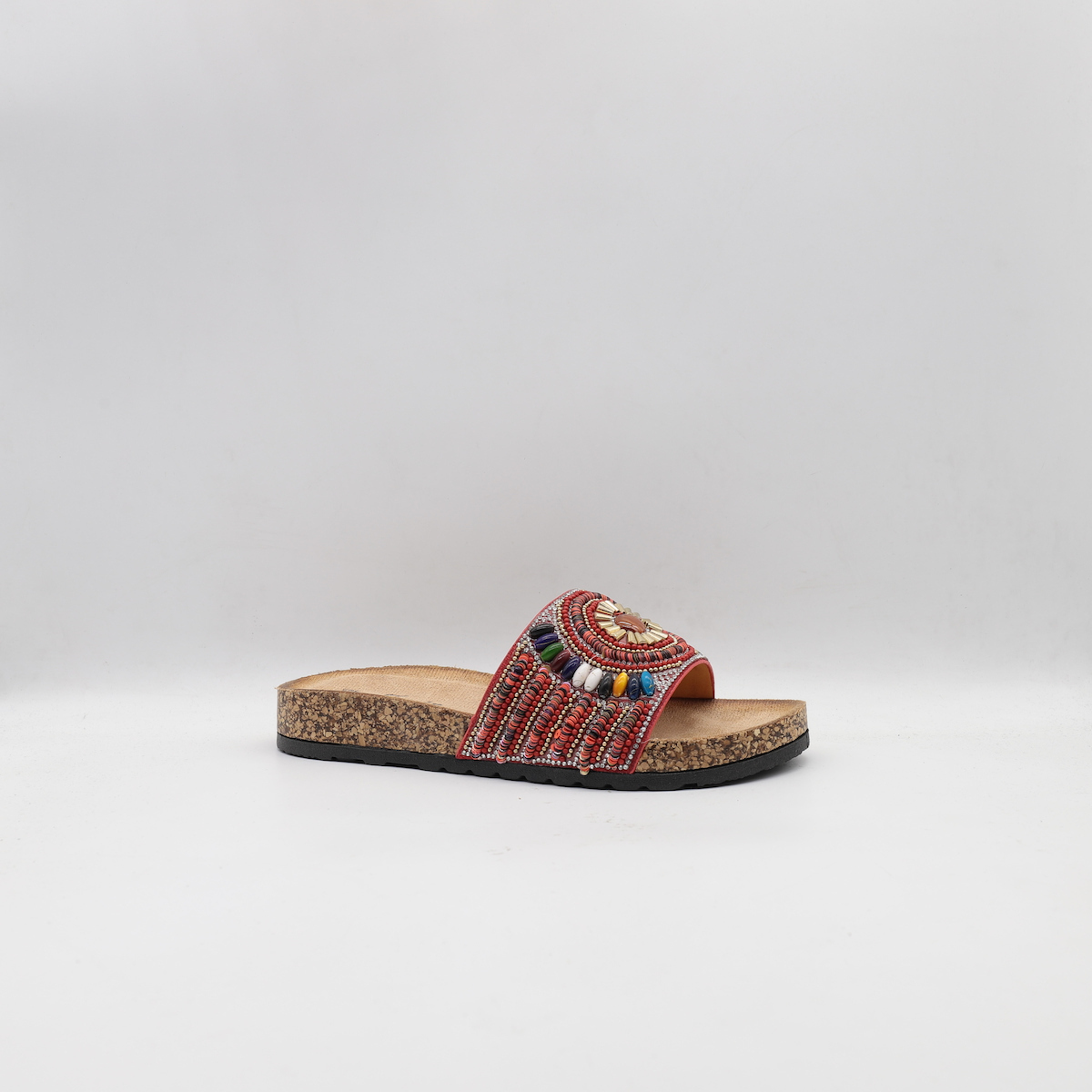 Με εξωτερική σύνθεση από συνθετικό καστόρι υλικό και πάτο από φελλό, ύψους 5 cm. Έχουν αντιολισθητική σόλα και ενιαίο, ανατομικό εσωτερικό πάτο, για ορθή στάση σώματος. Είναι άνετες και κομψές, κατάλληλες για καθημερινή χρήση.
