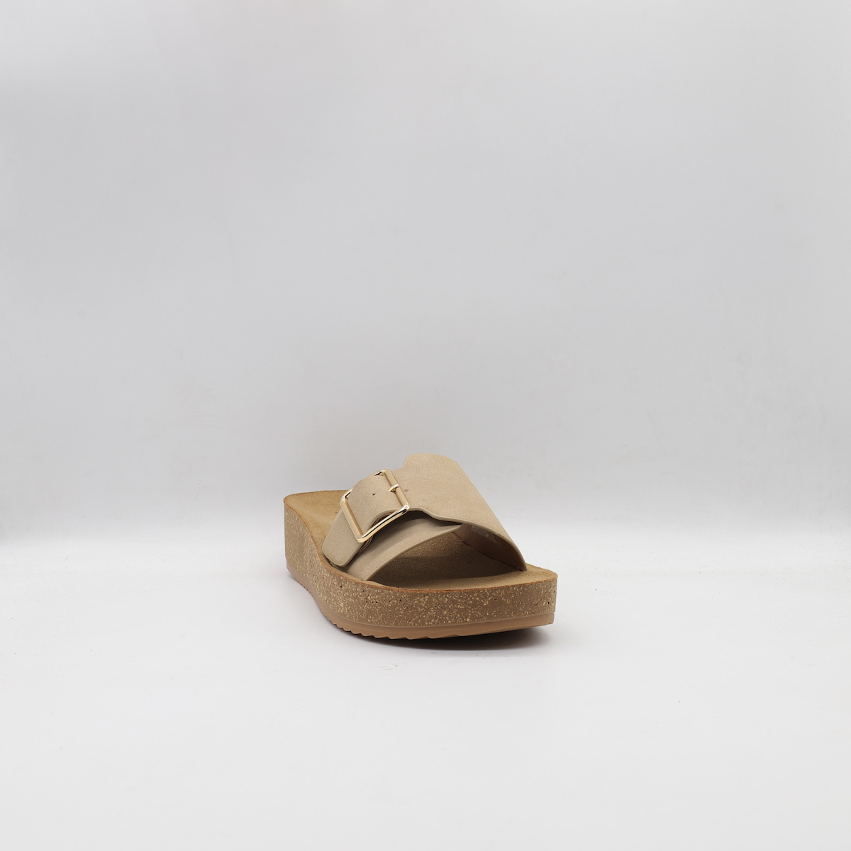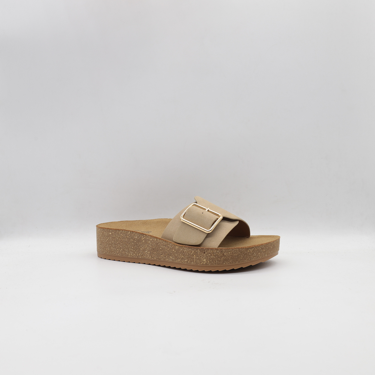 Με εξωτερική σύνθεση από συνθετικό καστόρι υλικό και πάτο από φελλό, ύψους 5 cm.Έχουν αντιολισθητική σόλα και ενιαίο, ανατομικό εσωτερικό πάτο, για ορθή στάση σώματος.Είναι άνετες και κομψές, κατάλληλες για καθημερινή χρήση.
